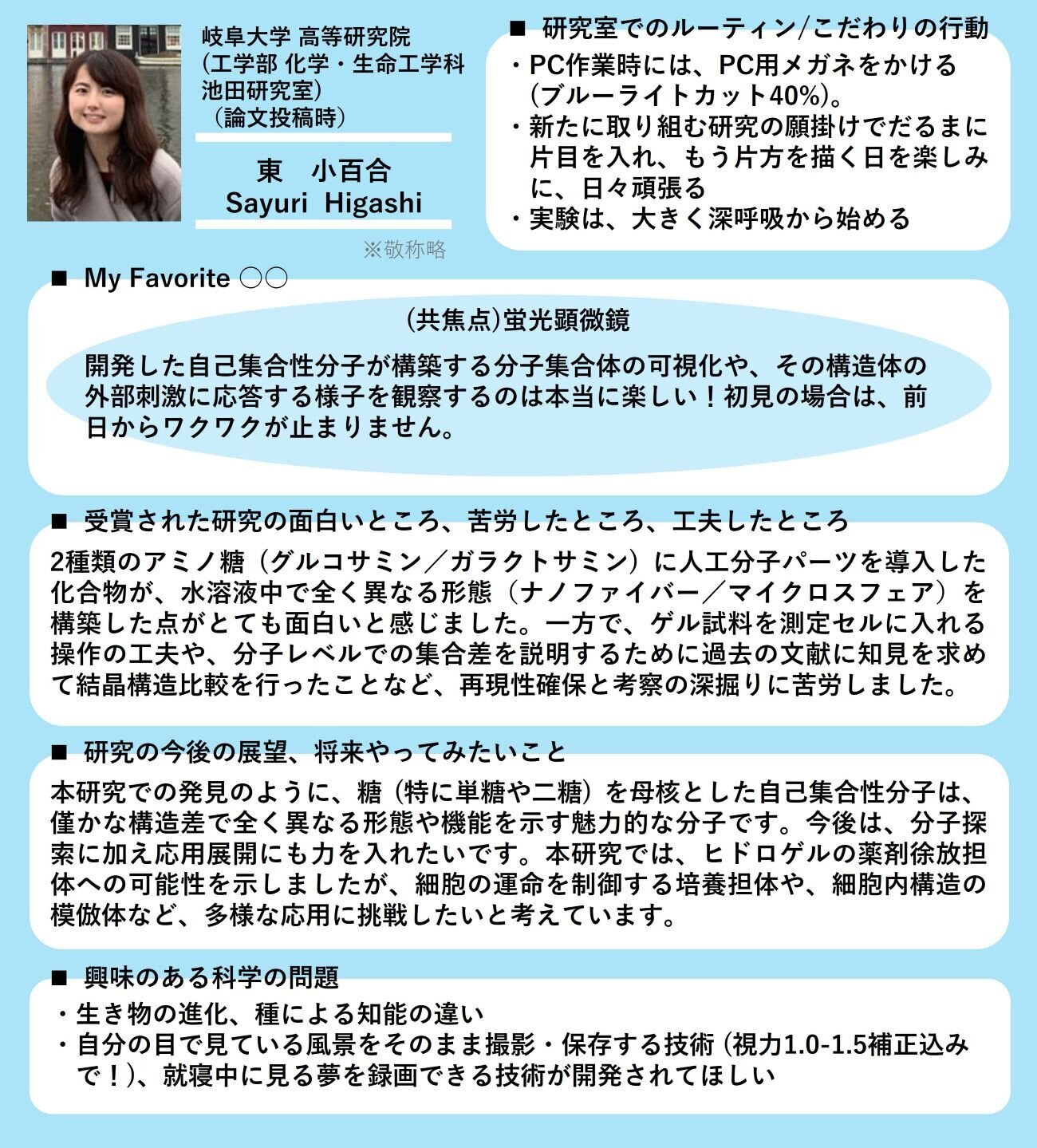 当会ジャーナルの受賞論文やジャーナル賞に主に携わった若手研究者に記事のご執筆をお願いしております。ご執筆者のご紹介、そして同じ化学分野でご活躍の方々向けのメッセージとして掲載を行っています。
