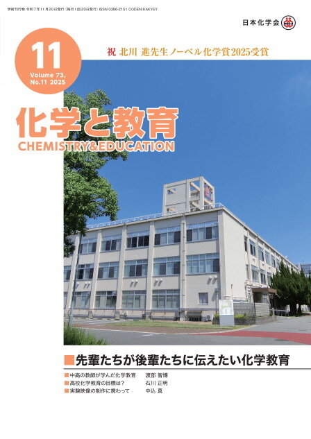 化学の分野を中心に話題の研究や技術をやさしく解説した特集と、教育現場に役立つ化学実験の紹介などの連載記事を掲載。