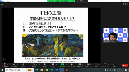 産学交流委員会人材交流小委員会主催イベント、『大学生・大学院生向けの企業研究者とのオンライン座談会』6月9日にZoomを利用したオンライン開催にて実施された。本イベントは、学生に将来のキャリアを考える機会として、(株)ブリヂストン、花王(株)、 (株)ニコンそれぞれから研究者の方を招き、座談会形式として企画したものである。オンライン開催ということもあり、全国各地から14名の学生が参加し、活発な意見交換が交わされた。参加した学生からは「大学での研究と企業での研究の違いについて詳しく知ることが出来た」や「他の就活イベントよりも,双方向のコミュニケーションが多く,より踏み込んだ話をすることができたと感じた」と好評を得た。